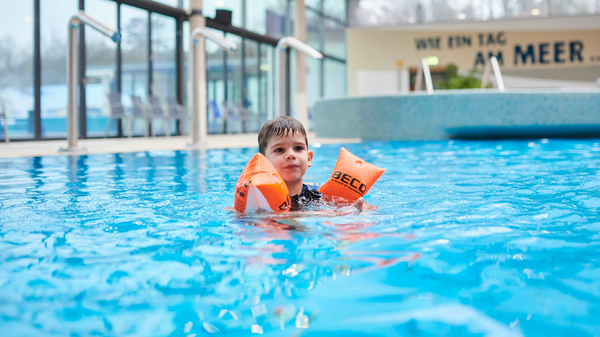 Im Schwimmbad können Kinder das Wasser intensiver kennenlernen: Planschen, Gleiten, erste Tauchversuche oder spielerische Bewegungen im flachen Wasser helfen dabei, Vertrauen aufzubauen. Wichtig ist, dass Ihr Kind sich sicher fühlt und das Tempo selbst bestimmen darf.
