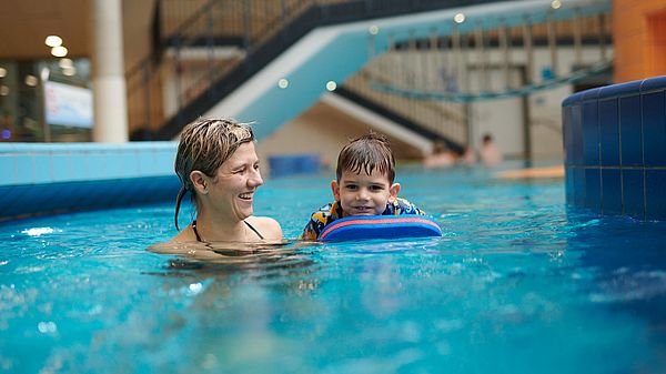 Sicherheitshinweis: Wenn Sie selbst nicht sicher schwimmen können, sollten Sie Ihrem Kind das Schwimmen nicht alleine im Schwimmbad beibringen. Nehmen Sie eine Begleitperson mit, die sicher schwimmen kann, oder nutzen Sie ein betreutes Angebot zur Wassergewöhnung